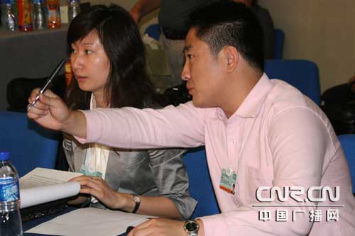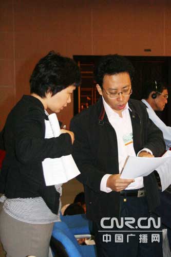 中央臺(tái)記者馮悅與大連站記者賈鐵生討論連線(xiàn)報(bào)道計(jì)劃