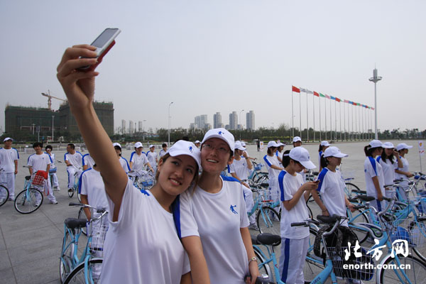 天津北方網訊:3日下午,2010天津夏季達沃斯論壇城市志愿者騎行隊成立暨“綠色騎行、快樂低碳”宣傳活動啟動儀式在梅江會展中心前廣場舉行。200位志愿者騎行隊員將深入本市主要街道和居民社區,向市民和游客廣泛宣傳天津夏季達沃斯論壇和低碳環保理念。