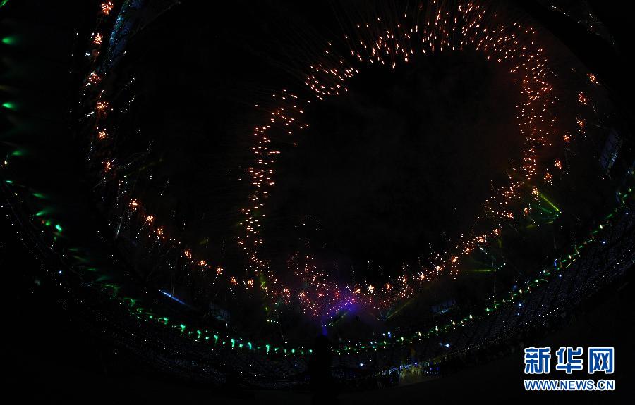 8月12日,第三十屆夏季奧林匹克運(yùn)動(dòng)會(huì)閉幕式在倫敦奧運(yùn)會(huì)主體育場舉行。圖為閉幕式上的焰火表演。 新華社記者沈伯韓攝
