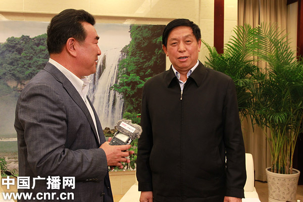 中央臺“走轉改”系列報道“傾聽貴州”采訪團成員之一,中央人民廣播電臺臺長王求采訪貴州省委書記、省人大常委會主任栗戰書