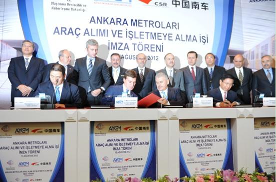上圖:8月13日,中國南車株機公司獲簽25億元人民幣的土耳其安卡拉地鐵車輛項目合同。