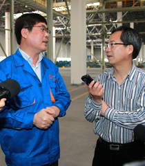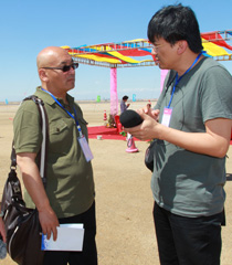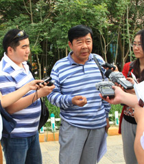新疆民族語言廣播中心主任帕爾哈提·玉素甫在采訪現場
