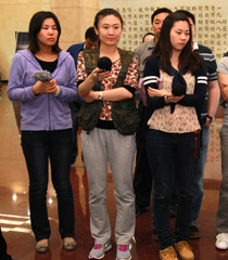 劉黎黎、杜希萌、楊寧在《傾聽新疆》采訪中