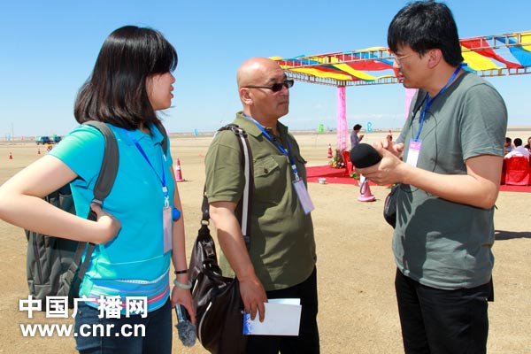 劉黎黎、費磊等記者向中國之聲副總監李偉匯報采訪情況