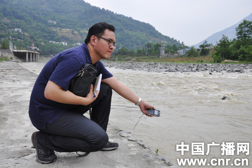 廣東臺記者張斌在收錄河道的音響。中廣網記者郭璇 攝