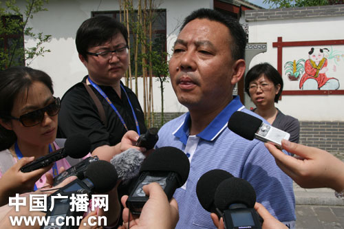 中廣網北川5月9日消息(記者肖曉冬)根據中國廣播聯盟理事長、中央人民廣播電臺臺長王求在2012年全國廣播電臺聯盟年會上將“走轉改”常態化的號召,5月9日中央臺趙忠穎副臺長帶領中央臺總編室、中國之聲、經濟之聲、中國廣播聯盟、平面媒體中心、中國廣播網及全國廣播電臺聯盟成員臺的50余位記者先后來到了四川綿竹年畫村、北川老城區遺址及新北川縣新城區采訪。