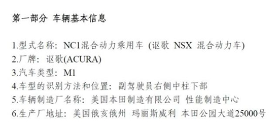 近日,全新謳歌NSX現身最新一期的工信部環保目錄,預計新車將于明年正式在國內進口上市。
