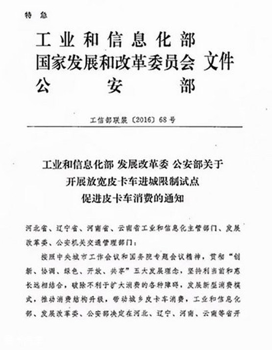 政策放開(kāi)——皮卡可以進(jìn)城啦!