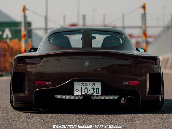 總結(jié):馬自達(dá)RX7一款稱得上在日本本土上叱剎風(fēng)云的跑車。靚麗的外表以及不錯的動力廣受粉絲的喜愛。這款改裝過得RX7深棕色的車身讓它顯得非常神秘,懸掛的改裝讓它變得更加低矮,這種車身可以提供更好地下壓力,也更加符合空氣動力學(xué)的理念從而讓車手更好的控制以實現(xiàn)人車合一的感覺。車頭的造型聚集了超跑的元素,霸氣十足的范兒在這提起一點不為過。方正的車尾讓它變得更加扎實,單邊的排氣雖然不能成為亮點,但當(dāng)你真正擁有它的一刻,那些東西早已被你拋之腦后。因為它身上還有很多值得你欣賞的地方。內(nèi)飾方面,作為一款運動型性能車,recaro的運動座椅必不可少,它的存在為駕駛者提供了更好地包裹性,從而使駕駛的樂趣進(jìn)一步提升。