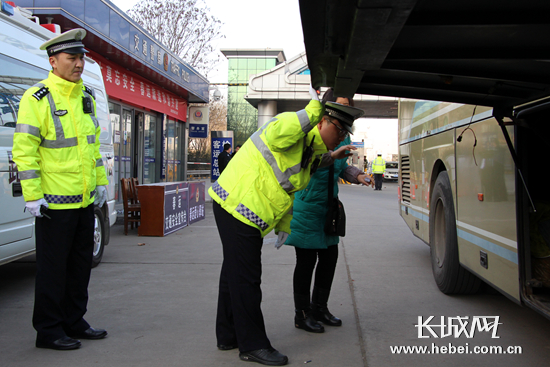 在春運(yùn)交通安全服務(wù)站,民警正在登記檢查。長(zhǎng)城網(wǎng) 高琳哲 攝