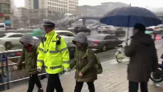 “贈人玫瑰,手有余香。孩子們的舉動讓我真的很感動,雪天執勤也覺得暖暖得!逼萘汲榻B,回到崗位上還有許多市民自發地為他們撐傘,都被他婉言謝絕了!岸颊f愛心是一場接力,我的本職工作就是立足崗位,在大雪天為市民守護平安。”