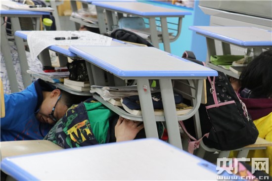 上午8時許,學校音控室發出警報,學生們在老師的指導下,迅速有序地按照預定路線進行疏散。三分鐘內,全校師生順利到達安全區域。隨后,專業培訓機構對全校師生講解防震減災及避險急救知識,包括避震、緊急救護等內容。