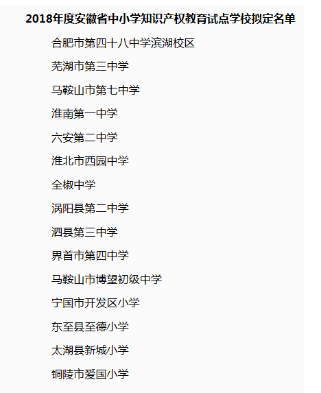 這15所中小學(xué)入選安徽知識產(chǎn)權(quán)教育試點(diǎn)學(xué)校(名單)