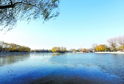 什剎海前海部分水面已結(jié)了一層薄冰。攝影 于志強