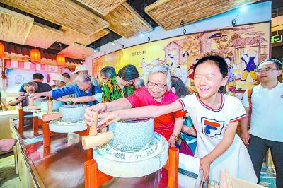 昨天,市民走進北京市腐乳科普館,了解老字號“王致和”,體驗腐乳制作傳統工藝。本報記者 潘之望攝