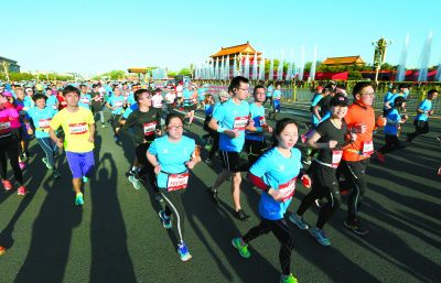 15日上午7時(shí),2018北京國(guó)際長(zhǎng)跑節(jié)、北京半程馬拉松在天安門(mén)廣場(chǎng)鳴槍起跑,大約18000人參加了比賽。