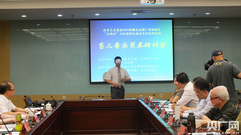 央廣網北京5月24日消息(記者吳凱)由中國殘聯宣文部、中國盲人協會、吉林藝術學院主辦,中國殘疾人事業新聞宣傳促進會、中國盲文圖書館、北京市殘聯協辦的盲人音樂藝術研討會今天在京舉行。中國殘聯副主席、黨組成員呂世明,中國殘聯副主席、中國盲協名譽主席李志軍,中國盲協主席李偉洪、副主席李慶忠,中國殘聯宣文部主任郭利群,著名盲人二胡演奏家甘柏林以及文藝界代表和嘉賓出席了研討會。