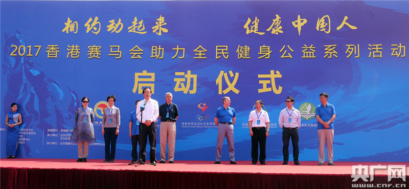 央廣網北京5月27日消息(記者王延輝)由香港賽馬會出資國家體育總局社會體育指導中心、中國社會體育指導員協會、北京市體育局、北京市公園管理中心、豐臺區人民政府主辦,北京市社會體育管理中心、豐臺區體育局承辦的香港賽馬會助力全民健身公益系列活動啟動儀式今天(27日)上午在北京園博園舉行。本次活動得到了北京園博園管理中心的大力支持。國家體育總局副局長趙勇先生、香港賽馬會行政總裁應家柏先生以及國家體育總局相關職能部門、北京市體育局、豐臺區人民政府等各界領導和嘉賓、社會體育指導員代表以及1000余名健身愛好者參加了啟動儀式。