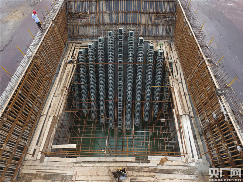 “由于楊泗港大橋的特殊設計,其錨碇需承受的力相對更大。”據中鐵大橋院副總工程師徐恭義介紹,楊泗港大橋位處“橋群”河段,橋址8.2公里范圍內就有4座橋梁(分別為武漢長江大橋、鸚鵡洲大橋、楊泗港大橋、白沙洲大橋)。考慮到通航和交通量等因素,大橋設計為主跨1700米的雙層雙向10車道公路懸索橋。由于橋梁跨度大,根據懸索橋結構受力特點,直接導致了大橋主纜拉力大,橋塔壓力大、基礎規模大。大橋共兩根主纜,單根設計拉力為6.5萬噸,所承受的拉力足以吊起一艘航空母艦。楊泗港長江大橋南錨碇位于武昌岸,其主要功能是承受大橋主纜的拉力。作為大橋的重要受力結構之一,南錨碇和北錨碇將要拉住全橋的重量。