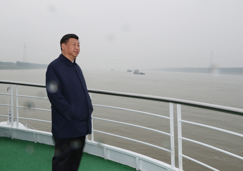 央廣網(wǎng)荊州4月25日消息(記者馬闖)25日上午,習(xí)近平從荊州港碼頭登上輪船,沿長江進(jìn)行考察。總書記來到甲板,憑欄眺望。看到江面上過往的貨船,總書記問:“每天都是這樣忙碌嗎?晚上也通航吧?航道里危險的暗礁清除了沒有?船上的生活用水還是直排嗎?”他結(jié)合展板,詳細(xì)了解了長江干線航道治理、荊江大堤保護(hù)等情況,并聽取了國家發(fā)展改革委、交通運(yùn)輸部、水利部和湖北省負(fù)責(zé)同志的匯報。