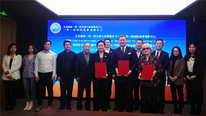 北京融商一帶一路法律與商事服務中心暨一帶一路國際商事調解中心與AIFC、IAC簽署備忘錄(主辦方供圖)