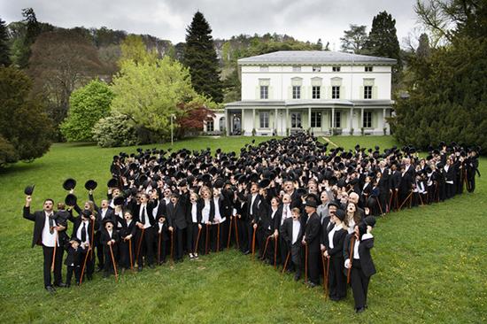 在查理·卓別林的128歲誕辰之際,在瑞士662人身著卓別林在電影中標(biāo)志性的黑色禮服,紀(jì)念這位電影喜劇大師。