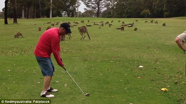 300多只袋鼠在球場(chǎng)里悠閑地跳來(lái)跳去,在客人揮桿時(shí)還會(huì)停下動(dòng)作駐足觀看,在視頻中觀眾可以看到成群的袋鼠走著、躺著,有些打球的客人還樂(lè)于有袋鼠相伴。讓這個(gè)平和的休閑運(yùn)動(dòng)頓時(shí)增加了幾分趣味。