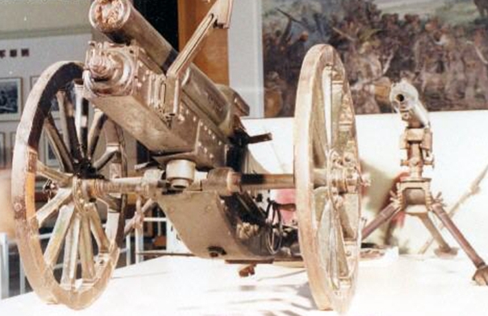 [馬沈:大概是在1959年9月15號,這一天賀龍元帥到軍事博物館審查。軍事博物館那時還處在預展階段,他來軍博看了長征部分之后說,你們少了一門炮,他下令讓人去找這門炮。最后這門山炮找到了,送到了軍博。作為中國人民革命軍事博物館,強調“革命軍事”,它是當仁不讓的“鎮(zhèn)館之寶”。]