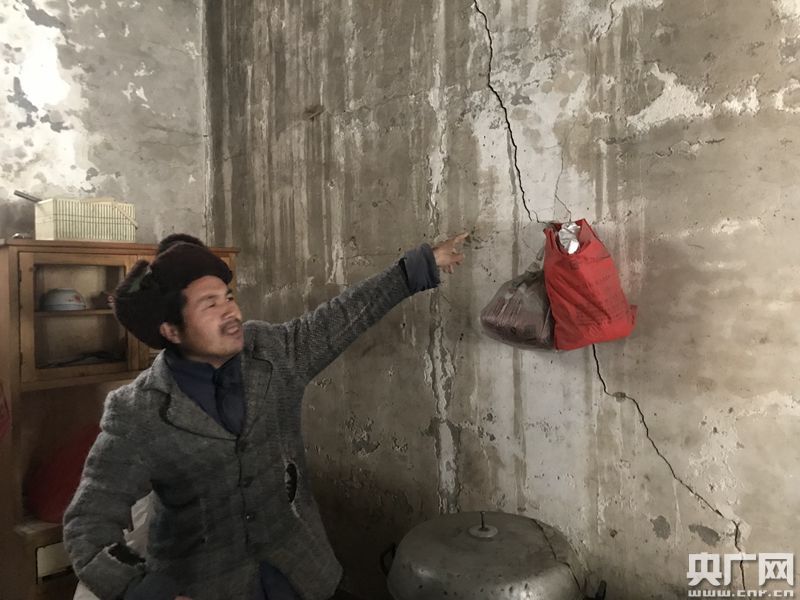 記者在村子里看到,離村民房子不足50米的地方,有一座叫“上河煤業”的廠礦,停產的廠區已經人去樓空。這座私人煤礦,留給村莊的是一間間嚴重變形、裂縫的房子,有的已經完全倒塌。村民張王孝說:“有裂的,尤其現在臨時搭建的石棉瓦房,彩鋼瓦房。過去把它支撐住,現在就在那邊住著。最嚴重的時候都倒了。”