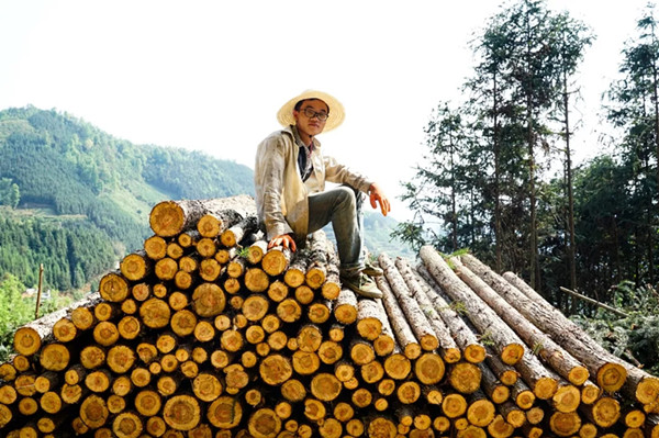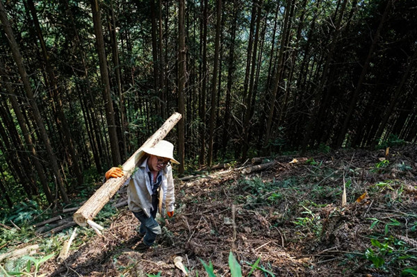 每根杉木長兩米,粗過小腿。即便年輕人,個把小時最多也只能扛上10來根,何況還要裝到卡車上。