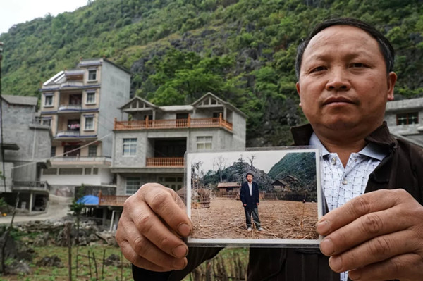 隆林縣是大石山區(qū),平地極少。一戶農(nóng)民從大山要地,蓋起了新房。