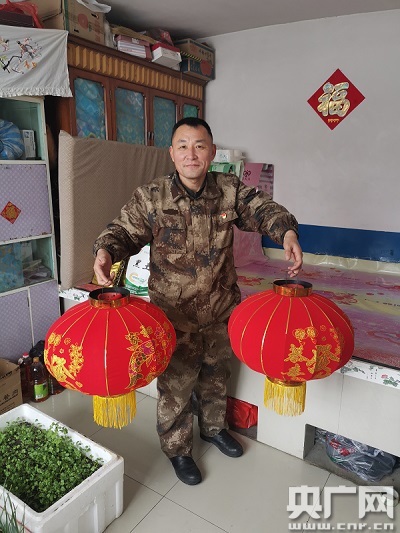 春節(jié)將至,郭景運(yùn)給貧困戶送去新春燈籠(中央廣播電視總臺央廣記者 馮志遠(yuǎn) 攝)