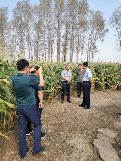 縣里面帶技術(shù)員來查看玉米長勢(央廣網(wǎng)發(fā) 郭景運(yùn)提供)