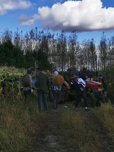 貧困戶們在操作機(jī)器收獲甜玉米(央廣網(wǎng)發(fā) 郭景運(yùn)提供)
