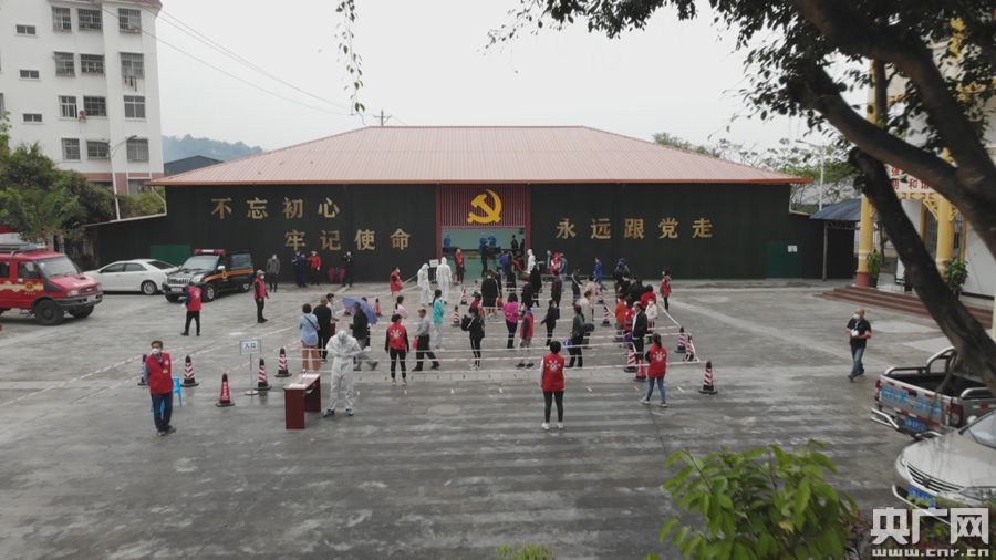 按計劃,目瑙社區黨群服務中心采樣點6日當天要完成1000多人的采樣。到了中午時分,黃仕恒通過微信簡單報了平安,又開始了緊張的工作。