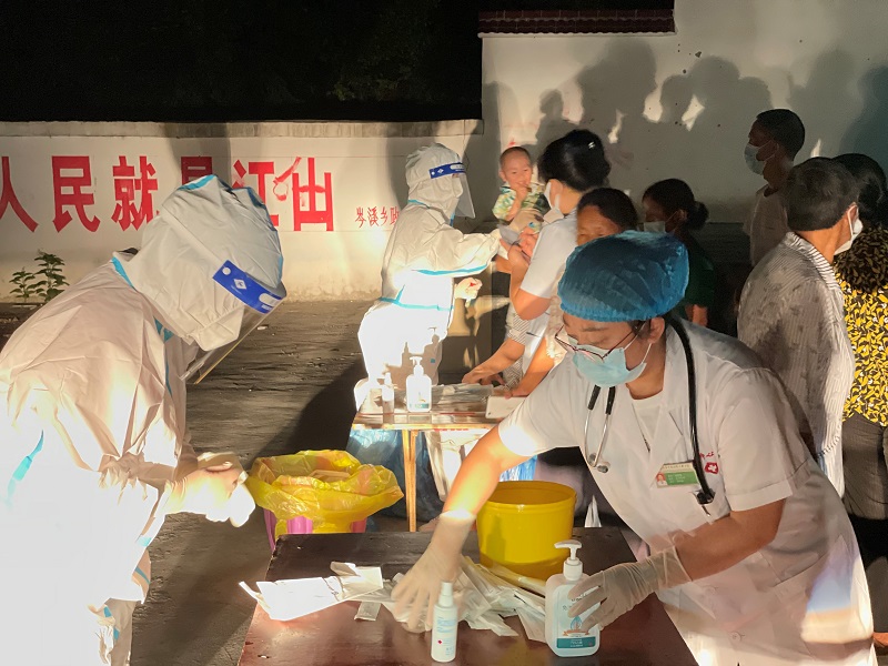醫(yī)務(wù)人員對(duì)群眾進(jìn)行核酸采樣(央廣網(wǎng)發(fā) 田姍攝)