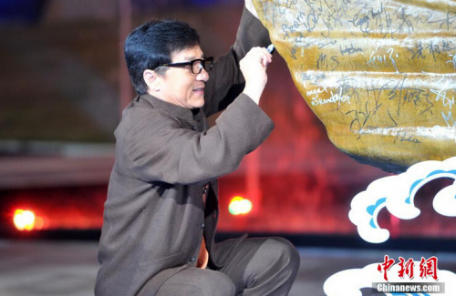 成龍現身河北石家莊,為其電影《絕地逃亡》造勢。中新社記者 翟羽佳 攝