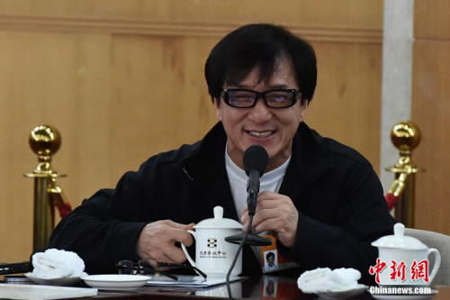 全國政協十二屆三次會議文藝界討論組對中外記者開放。成龍參加討論并現場發言。中新社發 翟羽佳 攝