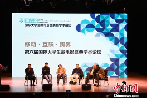 開幕式結束后,在中國傳媒大學楊乘虎教授的主持下,第六屆國際大學生微電影盛典學術論壇召開。中國著名紀錄片導演金鐵木,著名導演焦波,中國傳媒大學攝影系主任、博士生導師梁明,戛納電影節、柏林電影節、克萊蒙費朗國際短片節、法國電影聯盟等新技術影展單元總監及選片人、法國3D電影節主席佛朗索瓦 賽爾四位學術專家針對近年微電影事業的發展,電影新技術的應用,以及青年電影人的培養進行了頗富哲理性的對話和討論。