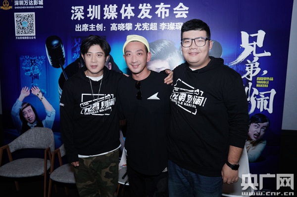 央廣網深圳11月03日消息(記者 于鑫淼 )由嘻哈包袱鋪掌門人高曉攀自導自演,孫集斌聯合導演,尤憲超、于莎莎、李璨琛等聯袂主演的喜劇電影《兄弟別鬧》將于11月10日全國公映。11月2日,導演高曉攀攜演員尤憲超、李璨琛前往深圳影院與當地媒體、觀眾見面,并開啟路演首次看片,在深圳迎來電影《兄弟別鬧》的首批觀眾。放映現場,觀眾隨劇情起伏頻頻大笑,甚至有人笑到飆淚。不少觀眾觀影后大呼,“年末最值得看的喜劇電影!薄巴耆鲱A期,是一部有笑有故事的良心喜劇!薄按钆涔夤鞴澥秤,效果更佳!边有觀眾觀影后表示,“光棍節不想脫單了,只想找個好兄弟!