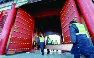 清場(chǎng)封門檢查的范圍包括,室外所有外露文物,如殿外銅缸、香爐、龜、鶴、日晷、嘉量等、附屬設(shè)施、門窗戶臂、鎖、電器、消防設(shè)備、房上房下、屋脊門廊、樹上樹下、缸內(nèi)缸外、地溝暗道、假山上下、山洞、果皮箱、垃圾車等,以及所有角落連同與開放區(qū)域相連的部分非開放區(qū)域。室內(nèi)包括所有文物、展室角落、附屬設(shè)施、展柜上下、門窗戶臂、夾道、電氣設(shè)備、電閘等。