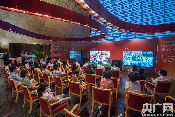 特別值得關(guān)注的是,音樂會當(dāng)晚,在全市的八個8K直播點(diǎn),市民通過8K電視、5G手機(jī)等顯示終端同步觀看了本場音樂會。這八個8K直播點(diǎn)分別設(shè)在了國家大劇院花瓣廳、金融街購物中心、海淀展示中心會議中心頤和廳、王府井步行街中環(huán)廣場、三里屯太古里南區(qū)中央廣場、中關(guān)村步行街、華熙LIVE北京時代美術(shù)館門口、亦莊經(jīng)濟(jì)開發(fā)區(qū)大族廣場一層。在金融街購物中心直播點(diǎn)觀看“8K+5G”直播的市民賈先生說:“8K的顯示效果太清晰了,連演奏員的頭發(fā)絲兒都看的很清楚,特別有現(xiàn)場觀演、身臨其境的感覺。”
