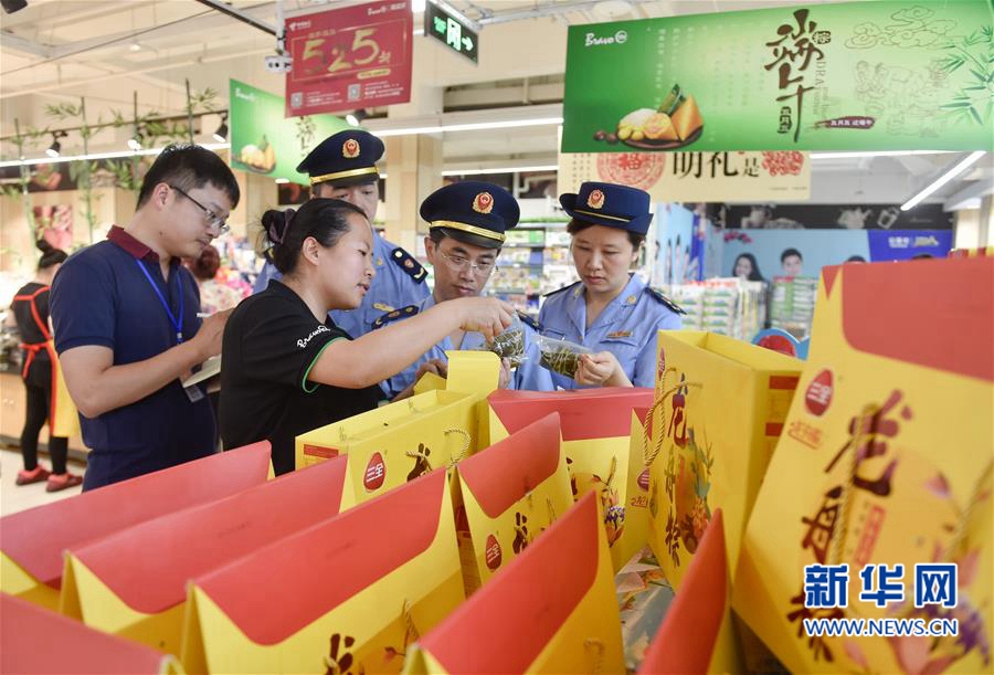 5月24日,在福州市臺(tái)江區(qū)一家超市,“四風(fēng)”督查組人員在了解在售粽子是否有過度包裝現(xiàn)象,并檢查提貨記錄。端午節(jié)前,福建省福州市紀(jì)檢監(jiān)察機(jī)關(guān)聯(lián)合市場監(jiān)督管理等部門,抽調(diào)人員組成“四風(fēng)”督查組,加強(qiáng)對(duì)登記注冊的商場超市、賓館酒店、煙酒門市等場所開展集中督查,重點(diǎn)檢查消費(fèi)發(fā)票和購物清單,及時(shí)報(bào)送發(fā)現(xiàn)的疑似“定點(diǎn)消費(fèi)”“使用公款定期支付”等線索,多措并舉嚴(yán)防“四風(fēng)”反彈。新華社記者 宋為偉 攝