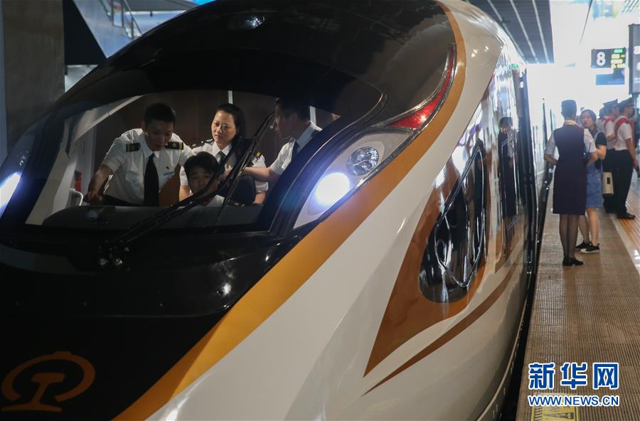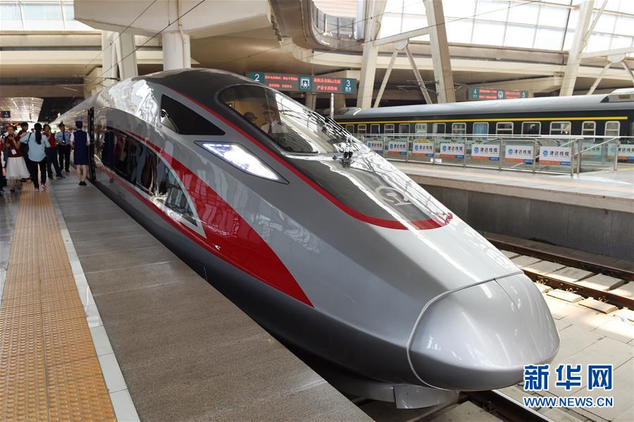 6月26日,“復興號”G123次列車駛出北京南站。 當日,中國標準動車組“復興號”在京滬高鐵兩端的北京南站和上海虹橋站雙向首發,分別擔當G123次和G124次高速列車。“復興號”是由中國鐵路總公司牽頭組織研制、具有完全自主知識產權、達到世界先進水平的中國標準動車組。 新華社記者邢廣利攝