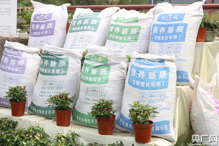 觀摩現(xiàn)場展出的有機肥。(央廣網(wǎng)記者 夏燕 攝)