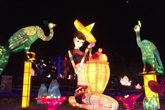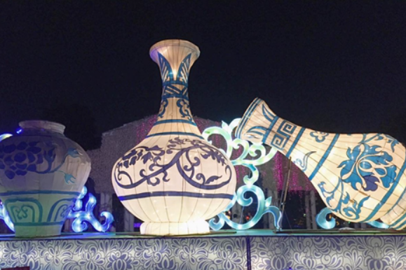 用彩燈傳統(tǒng)的制作工藝和最前沿的科學照明技術結合起來,既有濃郁的中國風,又有時尚新潮風,還有小朋友喜歡的卡通風格,以及眾多主題的燈廊、燈柱、燈雕畫廊的融合穿插,龍灣公園成為燈彩的夢幻世界,充滿濃濃的民族文化跟唯美浪漫的氛圍。