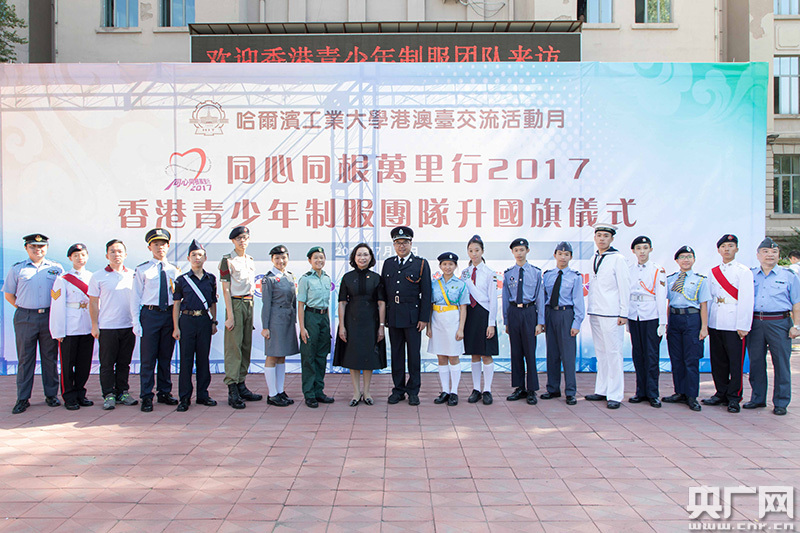 港青擔任旗手和護旗手,在哈工大舉行升旗儀式