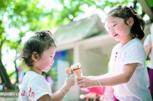 昨日,廣州暑熱難消,在珠江兩岸,姐妹倆吃冰淇淋解暑。廣州日報全媒體記者陳憂子攝