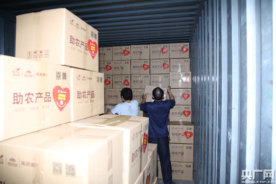 工作人員在裝載物資。(央廣網發)