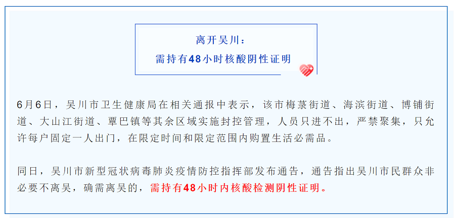 6月6日,吳川市確診一名無癥狀感染者,疫情防控形勢(shì)嚴(yán)峻,省、市相關(guān)部門對(duì)旅客出行作出最新指示。